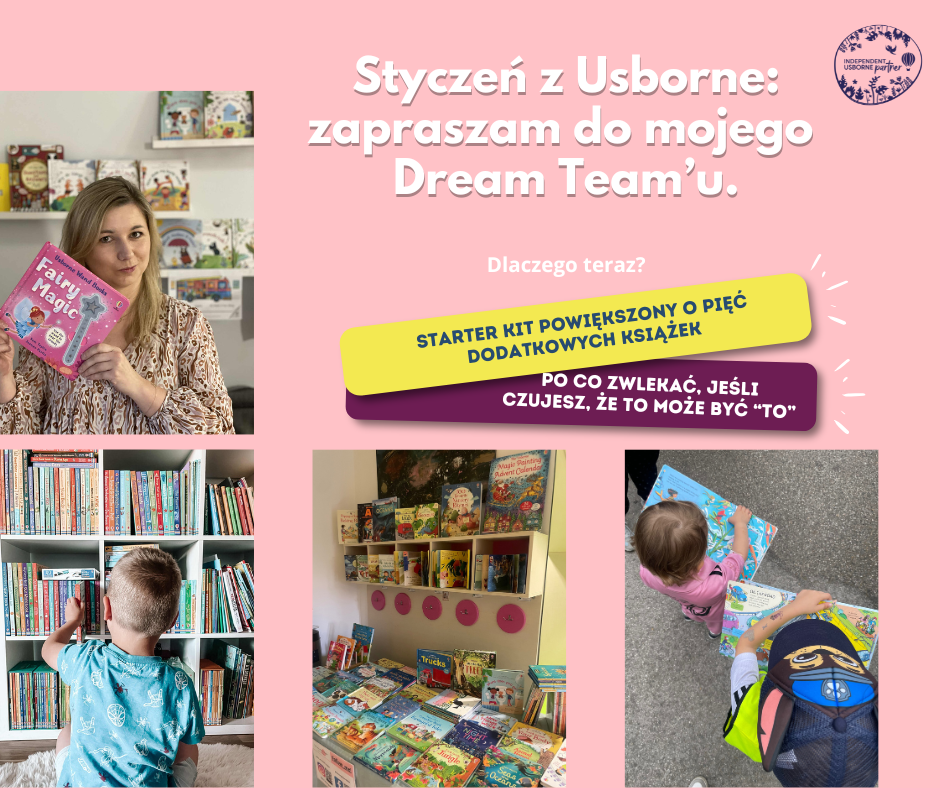 Jeśli rozważasz rozpoczęcie współpracy z wydawnictwem Usborne, by prowadzić swój własny, książkowy biznes, to styczeń jest świetnym momentem, by założyć konto Partnerki. W tym miesiącu skorzystasz bowiem z powiększonego pakietu startowego, składającego się z 22 książek anglojęzycznych dla dzieci oraz materiałów marketingowych.